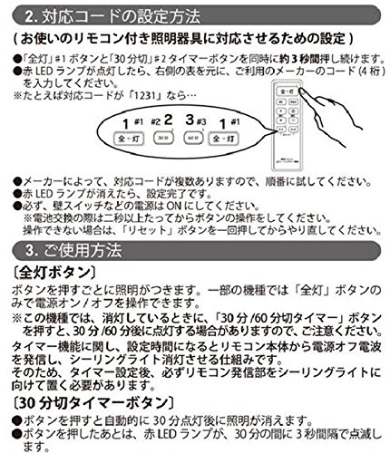 - 対応メーカー9社:2012年製~ アイリスオーヤマ/タキズミ/コイズミ/ダイコー/オーデリック/アグレッド/ドウシシャ/山善 / サナー