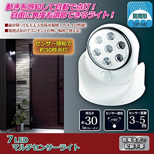 センサーライト 屋外 ledライト 7LEDマルチセンサーライト 防雨 電池式 自動センサー付きライト SV-5462