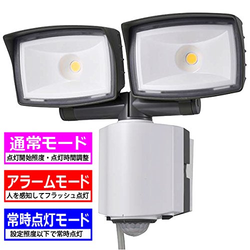 - センサー機能をお好みのモードに設定できる多機能型センサーライトです。 ・お客様のお出迎えに『通常モード』 人を検知しライトを点灯させます。点灯開始照度調整・点灯時間調整が可能です。 ・防犯対策に『アラームモード』 人を感知すると、昼夜関係なくライトが約20秒間フラッシュ点灯(点滅)します。 ・常時点灯で夜間の作業に『常時点灯モード』 設定した明暗照度以下の暗さになると、ライトが点灯します。