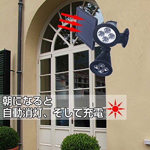 LEDソーラースポットライト 二灯 8LED センサーライト 太陽発電 ソーラー 明暗センサー ガーデン 防犯ライト 省エネ RGB 屋外 おしゃれ 防水 黒 昼光色