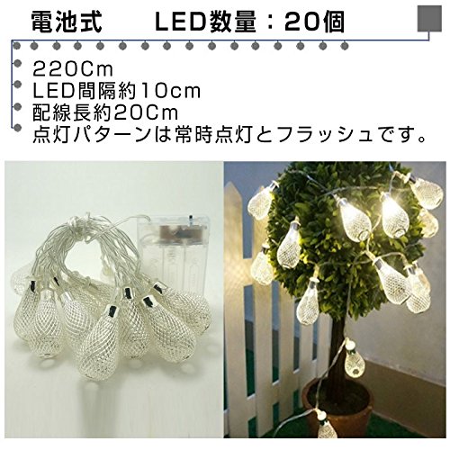 LEDイルミネーションライト 乾電池式 20球 デコレーションライト クリスマス 飾り 電飾 充電式 シャンパンゴールド