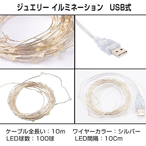 LEDイルミネーションライトUSB式 防水100球 10m LEDジュエリーライト ミックス