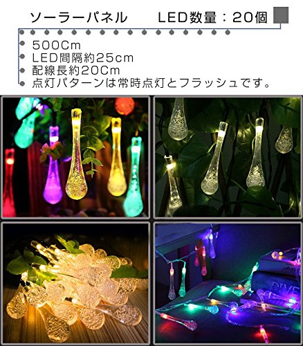 LEDイルミネーションライト 20球 電気代0円 太陽光充電 イルミネーション ソーラーライトクリスマス 飾り 電飾 充電式 ミックス