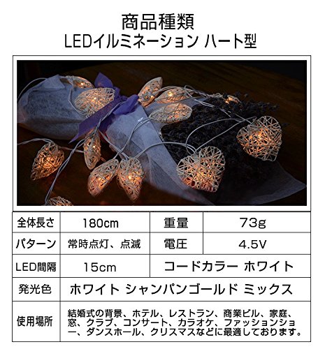 イルミネーション ハート型 10球 電池式 イルミネーション クリスマス ミックス