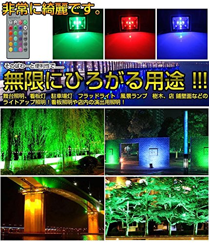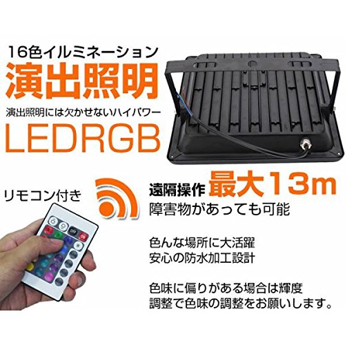 seakysea LED 投光器 50W 500W相当 薄型 リモコン付き 16色RGB 防水防塵 調光調節 イルミネーション