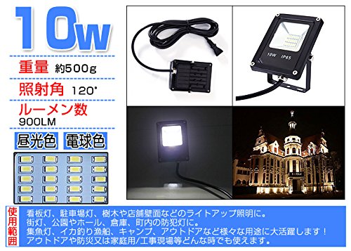 LED投光器 10W LED投光器 薄型 ブラック 防水加工 3mコード付き 6000-6500K 広角120度 看板灯 作業灯 駐車場灯 屋内 照明 屋外 昼光色