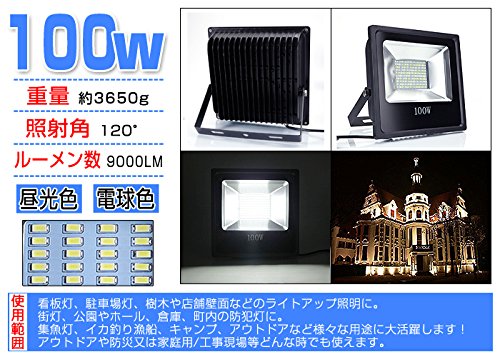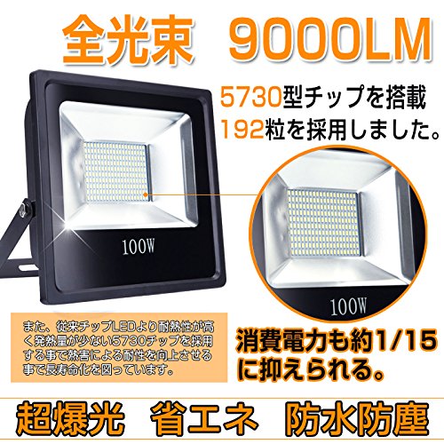 LED投光器 100W LED投光器 薄型 ブラック 防水加工 3mコード付き 6000-6500K 広角120度 看板灯 作業灯 駐車場灯 屋内 照明 屋外 昼光色