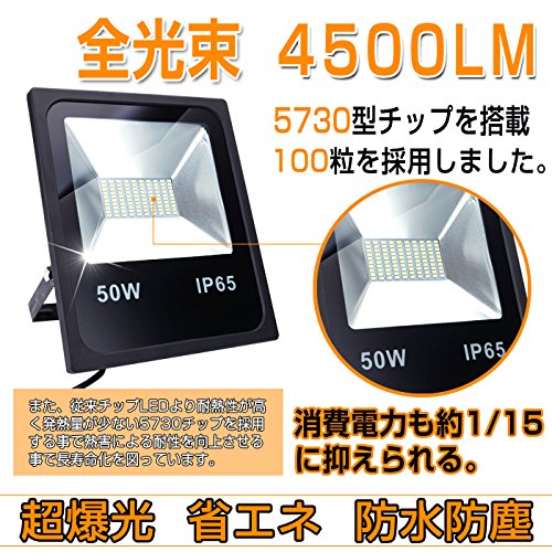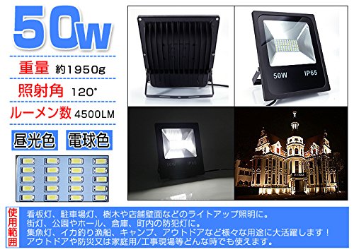 LED投光器 50W LED投光器 薄型 ブラック 防水加工 3mコード付き 6000-6500K 広角120度 看板灯 作業灯 駐車場灯 屋内 照明 屋外 昼光色