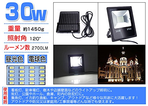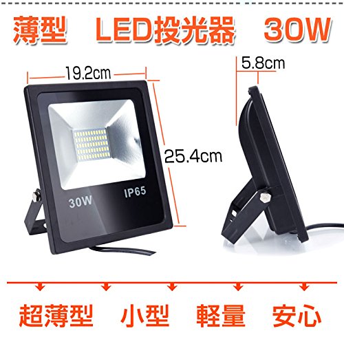 LED投光器 30W LED投光器 薄型 ブラック 防水加工 3mコード付き 6000-6500K 広角120度 看板灯 作業灯 駐車場灯 屋内 照明 屋外 昼光色