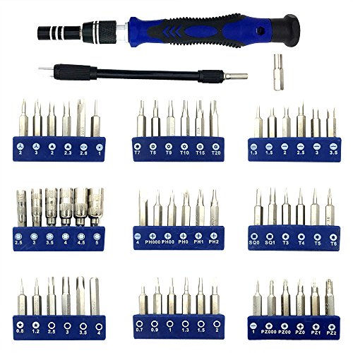 - 分解・修理業で過去の実践から収集したデータに基づき厳選した56の精密ドライバービットセット