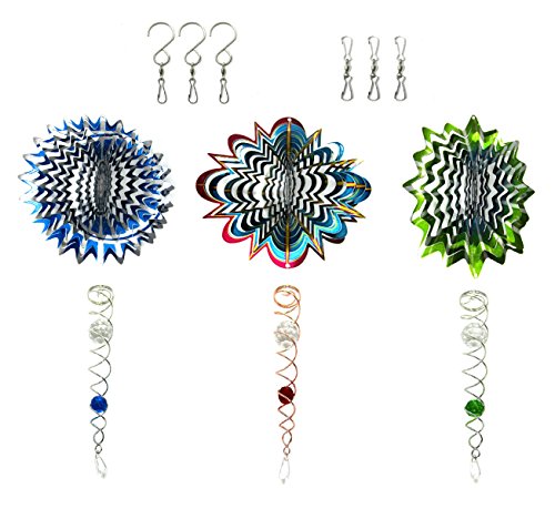 bundle- Shipityourway 3d風スピナースプラッシュスターWhirligig ( 3- 6.5 " 3d Spinners、3- 9 " Tailsセル、6 Swivels、マルチカラーセット)