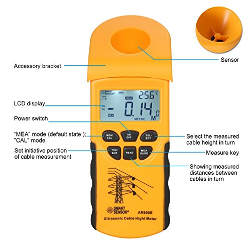 超音波ケーブル高さ計 6ケーブル測定LCD表示測定範囲(高さ3〜23m、面3〜15m) AR600E