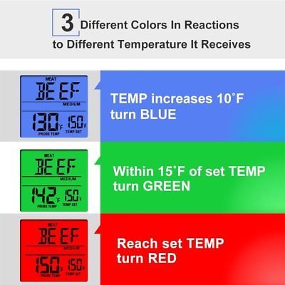 - 肉用温度計の用途があります。BBQ、オーブン、燻製肉,肉料理