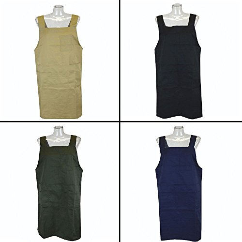 エプロン 前掛け H型 ロング丈 丸洗いOK レディース女性 婦人用 大きいサイズ(カーキ)