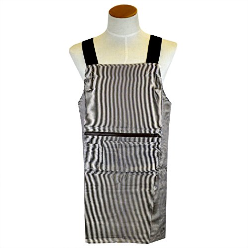 エプロン 前掛け メンズ 男性用 前ZIPポケット ヒッコリータイプ 大きいサイズにも対応(ブラウン)