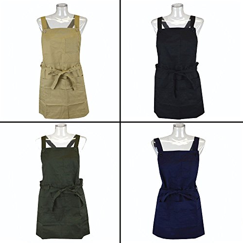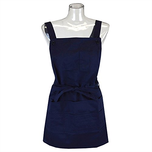 エプロン 前掛け 前しばり ショート丈 丸洗いOK レディース女性 婦人用 ガーデニング(ネイビー)
