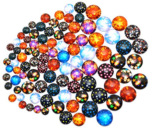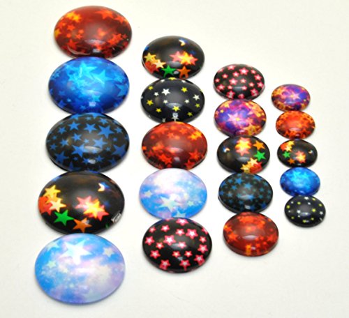 starPG 星 図柄付き 円形 ガラス カボション 12mm 16mm 20mm 25mm 各24個 計96個 アソート