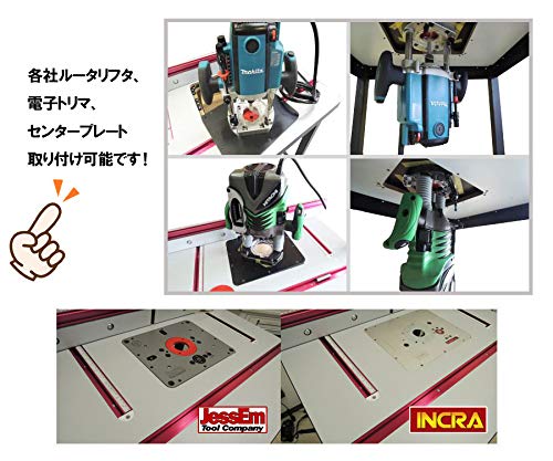 JessEm社とINCRA社のルーターリフターまたはセンタープレートを取り付け可能な設計をしております。