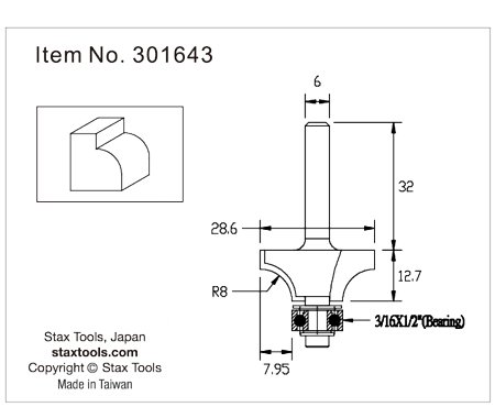 商品名:STAX TOOLS Roundoverビット R12 301659