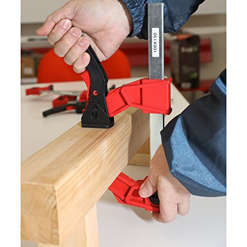 1.レバーを倒した状態でクランプあごの位置を調整し、材を挟みます。