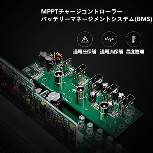 - MPPTチャージコントローラー内蔵:ソーラーパネルからの発電電力を最大効率で引き出す最大電力点追従機能(MPPT)機能付き、充電時間短縮が可能となります。
