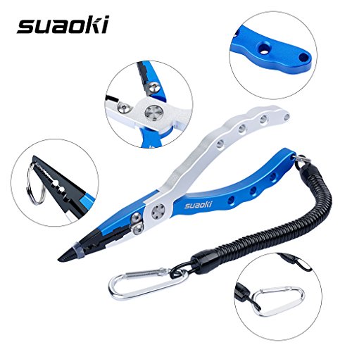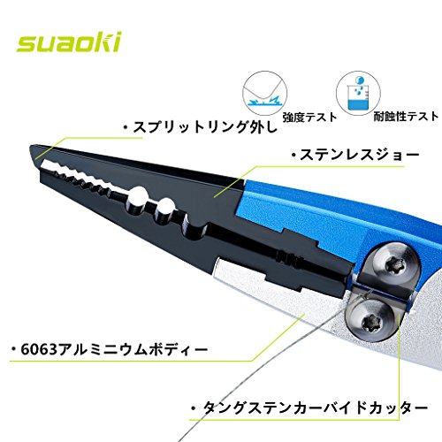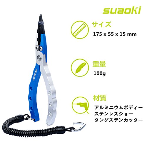 suaoki フィッシングプライヤー 釣り用ペンチ フィッシュグリップ 多機能 頑丈 針はずし フックはずし ラインカッター 魚釣りなど 専用ケース カラビナ 安全ロープ付き 12ヶ月保証付き