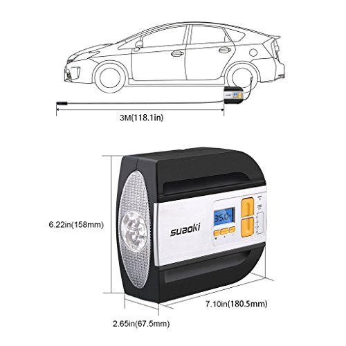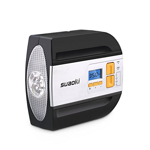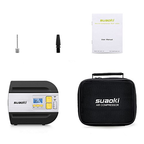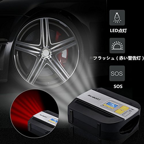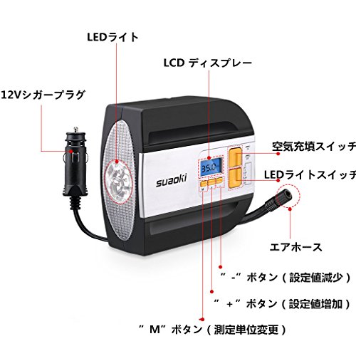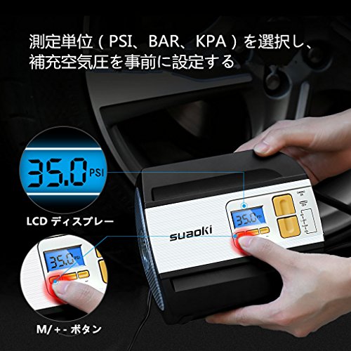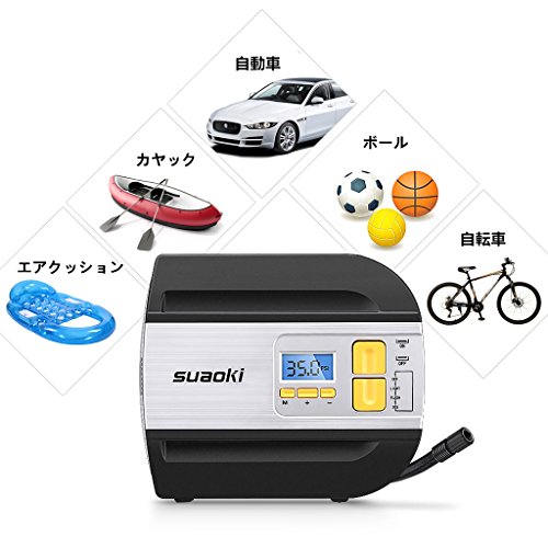 suaoki エアコンプレッサー 車用空気入れ デジタル表示 オートストップ機能 2種類アダプターノズル 空気圧測定 LEDライト付き コンパクト 自動車 バイク ボール レジャー用品などに 【一年間保証付き】