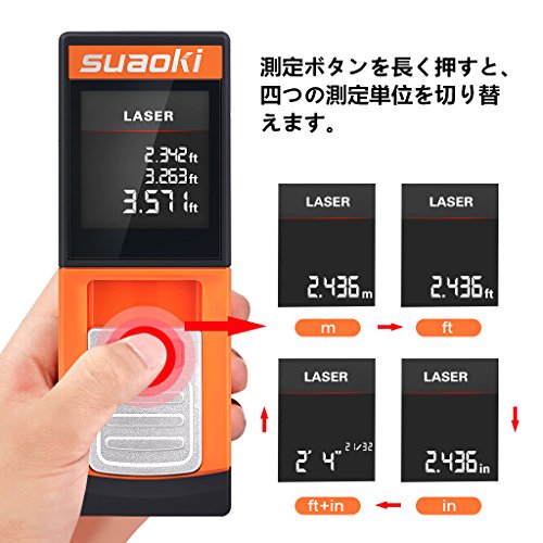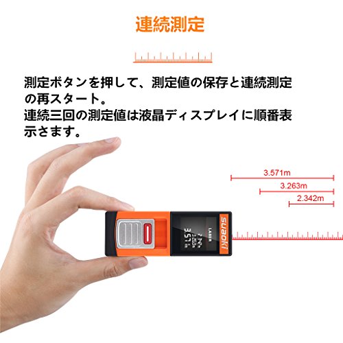 suaokiレーザー距離計 D5 最大測定距離20m 連続測定 LCDデジタル表示 バックライト搭載 測定単位選択 軽量 コンパクト型 操作簡単 日本語取扱説明書 一年間保証付き