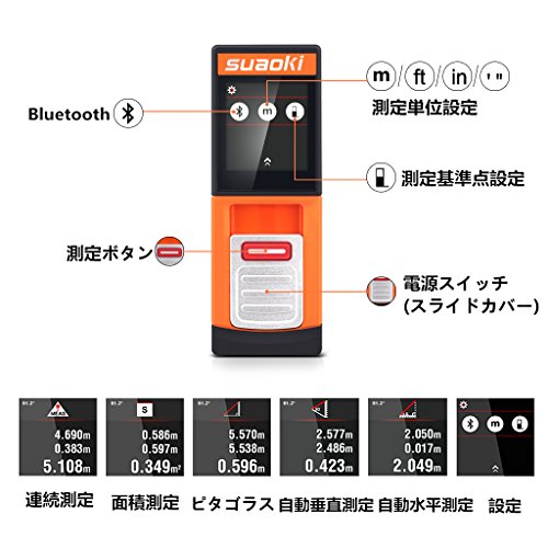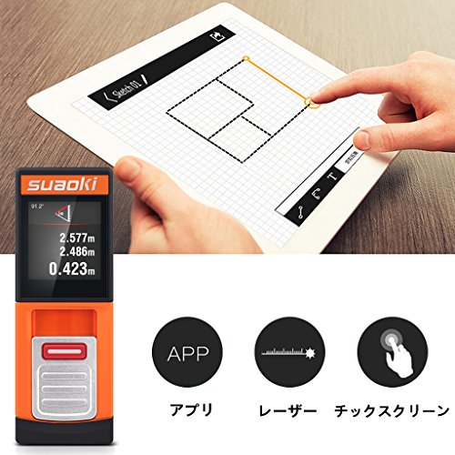 suaoki レーザー距離計 D5T 最大測定距離40m 5種類測定モード 測定単位選択 LCDデジタル表示 タッチスクリーン バックライト Bluetooth機能搭載 軽量 コンパクト 日本語取扱説明書 一年間保証付き