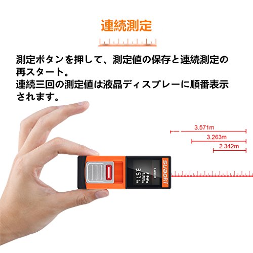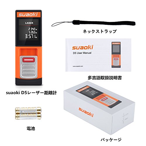 suaokiレーザー距離計 D5 最大測定距離40m 連続測定 LCDデジタル表示 バックライト搭載 軽量 コンパクト型 操作簡単 日本語取扱説明書 一年間保証付き