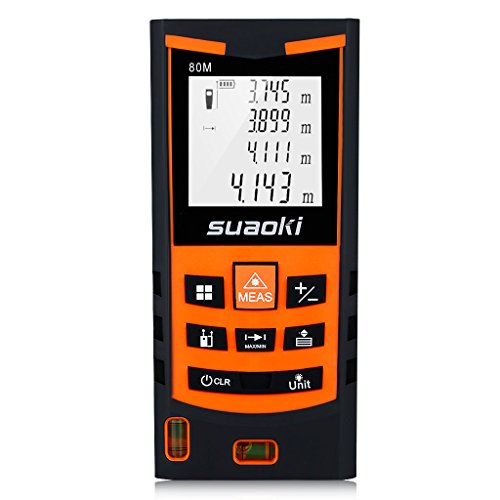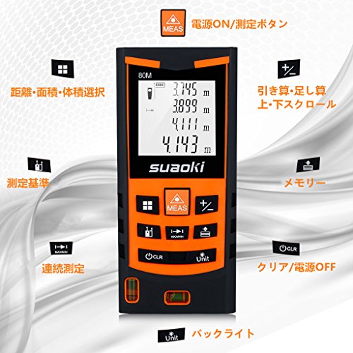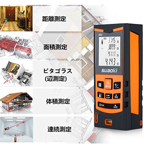 suaoki レーザー距離計 S9 最大測定距離80m バックライト搭載 距離 面積 容積 ピタゴラス 連続測定 自動計算 IP54防水規格 軽量