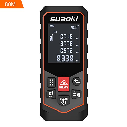suaoki レーザー距離計S7 最大測定距離80m 距離 面積 容積 ピタゴラス 連続測定 自動水平 自動垂直 角度センサー内蔵 加算 減算 IP54防水規格 コンパクト