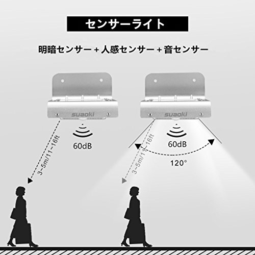 suaoki ソーラーライト センサーライト 太陽光発電 16LED 明暗センサー 人感センサー 音センサー付き 簡単設置 アルミニウム 防水 庭 ガーデン 玄関 屋外照明 防犯など
