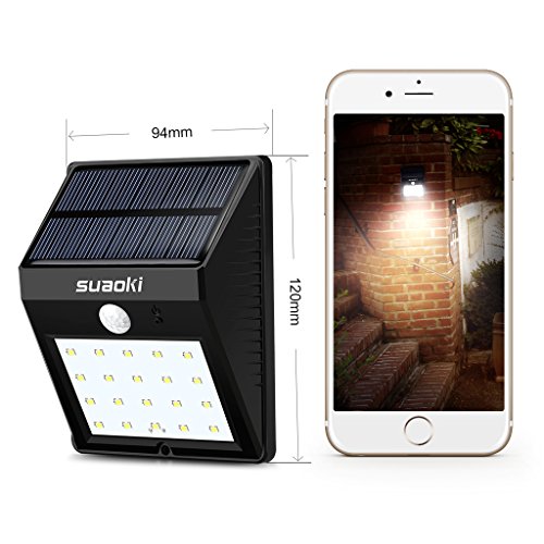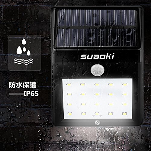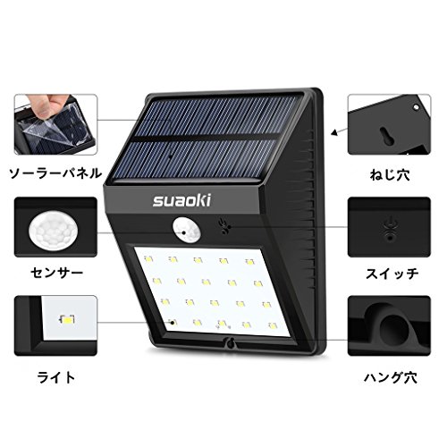 suaoki ソーラーライト センサーライト 太陽光発電 20LED 明暗センサー 人感センサー付き 簡単設置 防水 庭 ガーデン 玄関 屋外照明 防犯などに対応