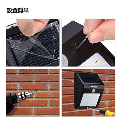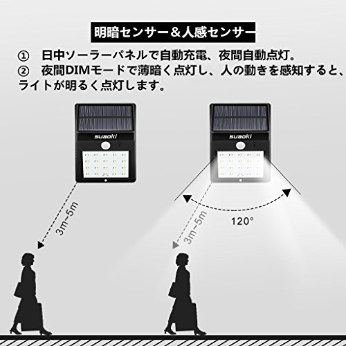 suaokiソーラーライト センサーライト 太陽光発電 20LED 明暗センサー 人感センサー付き 簡単設置 防水 庭 ガーデン 玄関 屋外照明 防犯などに対応