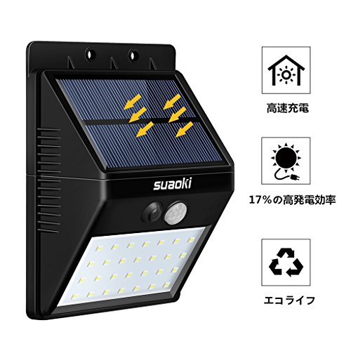 suaoki 28LED ソーラーライト センサーライト 太陽光発電 ライト・パネル分離可能 三つの点灯モード 明暗·人感センサー 夜間自動点灯 IP65防水 庭 ガーデン 玄関 屋外照明 防犯用など