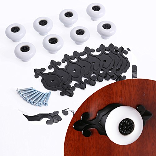 クラシック風 ドア取っ手 引き出しつまみ ドアハンドル 家具・装飾 ドア/窓/引き出し/食器棚/タンス/キャビネット 8組 ホワイト+ブラック