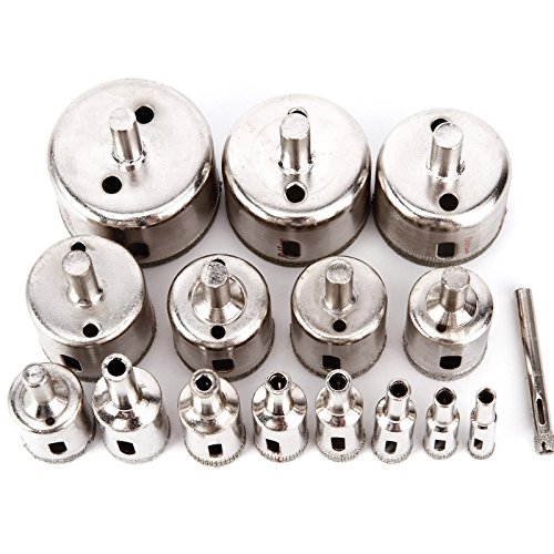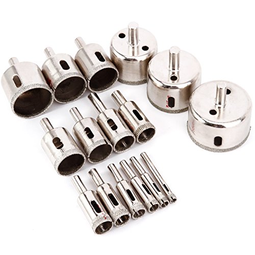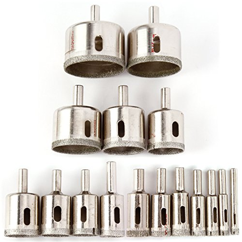 ガラス・磁器・陶器・石材対応 ダイヤモンドホールソー 6-50mm 穴あけ ドリルビット DIYツール 計16本入
