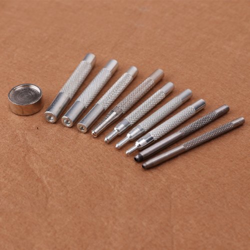 レザークラフト 打ち具 ホック 万能打ち台 各サイズ10点セット(穴抜きポンチ・凹凸打ち棒・打ち皿)初心者/手芸さん汎用 手芸製作