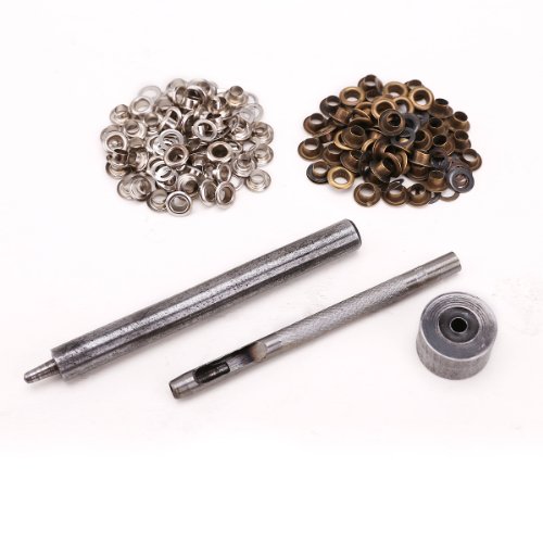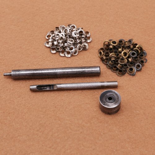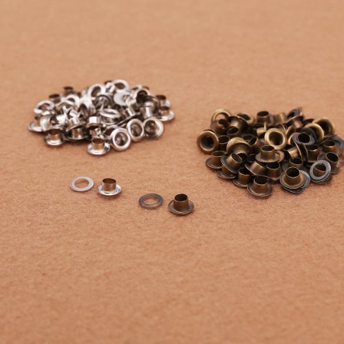 【皮ポンチ・ハトメセット】ハンドメイド・レザークラフト 真鍮製 DIYハトメグロメット 2色(シルバー・アンティーク) 内径4mm・計100組