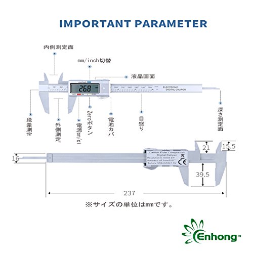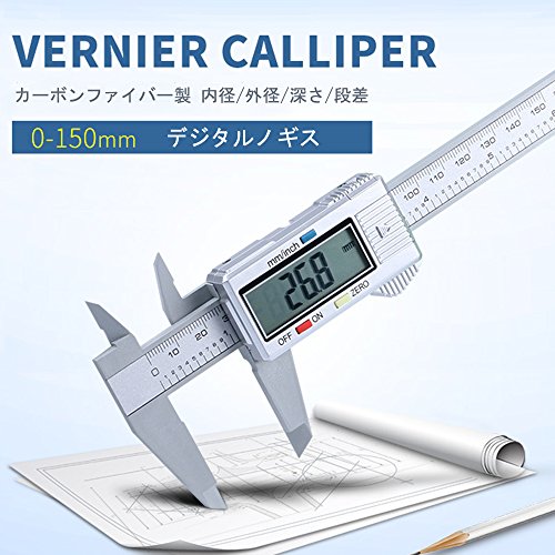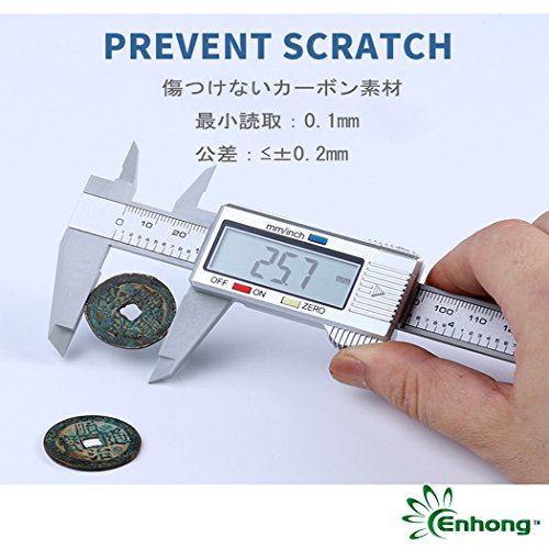Enhong デジタルノギス 0-100mm 0-150mm 0-200mm 0-300mm 内径/外径/深さ/段差 高精度 測定工具 電池付 (カーボンファイバー製 150mm 精度0.1mm シルバー)
