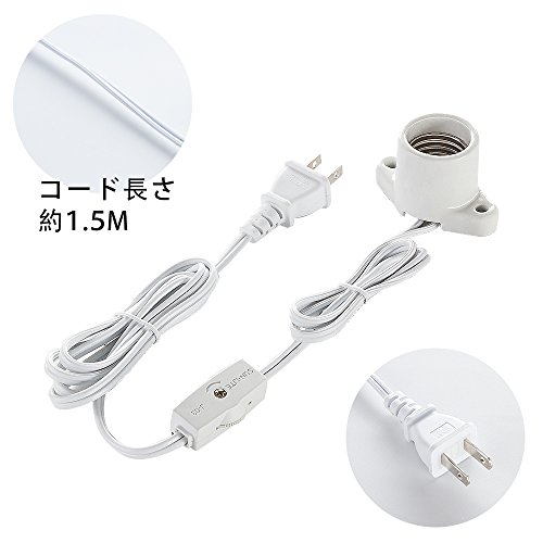 - 口金:E26。定格:250V 3A。長さが1.5mの吊り下げコードです。