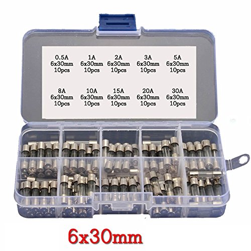 - 6×30mm: 0.5A、1A、2A、3A、5A、10A、15A、20A、30A 各10個 合計100個入り