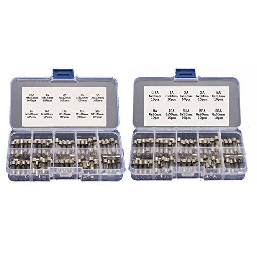 200個(100個 5x20mm 100個 6x30mm)ガラス管 ヒューズ