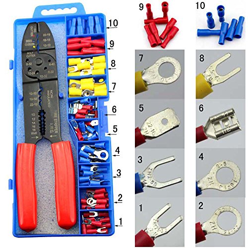 圧着ペンチ ワイヤーストリッパ 電工ペンチ 100個絶縁圧着端子付き