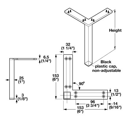 1 " square-l脚5 – 1 / 16 " Tall Brushedスチール