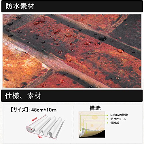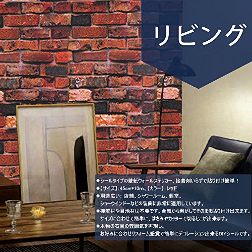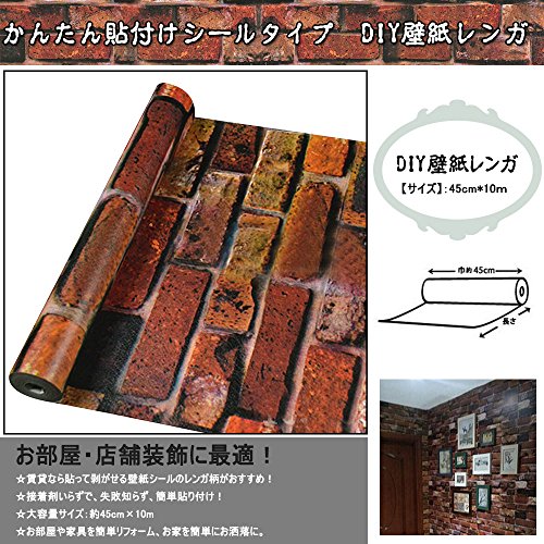 【 DIY 壁紙シール】高品質 壁紙 はがせるレンガ かんたん貼付シールタイプ 45cm×10m リフォーム ウォールステッカー 防水 防水 粘着シートトイレ キッチン 補修