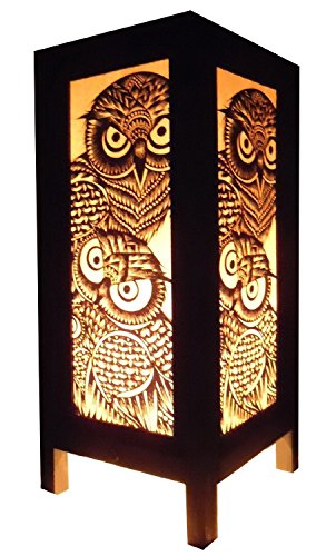 Thai Vintage Handmade Asian Oriental Handcraft Night Owl Bird Bedside Table Lights or Floor Wood Paper Lamp Home Decor Bedroom Decoration Modern Design from Thailand