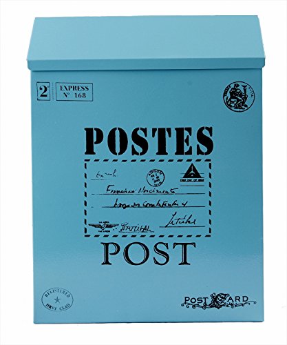 tomtask 郵便ポスト 壁掛け 郵便受け 郵便 ポスト アンティーク 調 鍵付き メールボックス (ブルー)