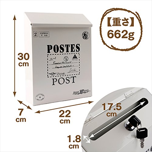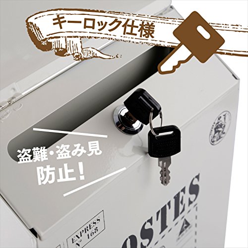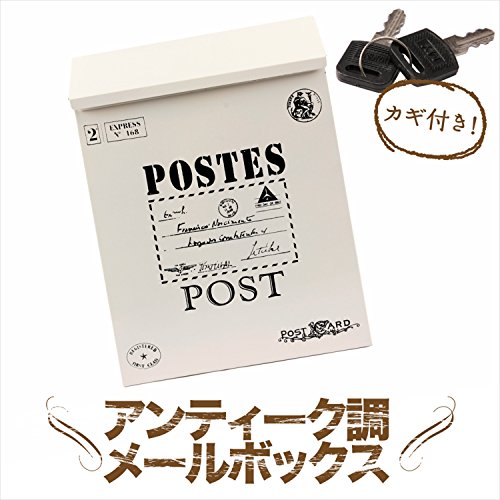 tomtask アンティーク 調 郵便 受け メール ボックス 壁掛け ポスト 鍵付き (オフホワイト)